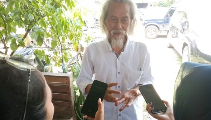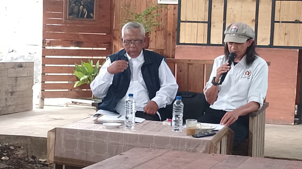 Drs H Suherlan (kiri) saat menyampaikan materi terkait Kode Erik Jurnalistik dalam pra UKW di Ranca ekek, Senin (20/10/25)