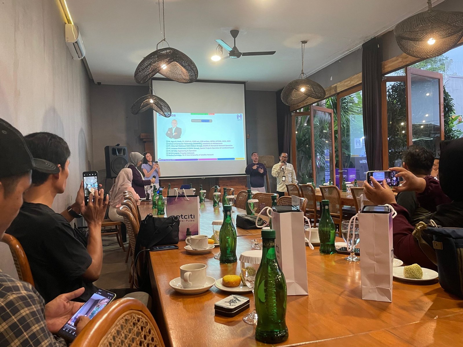 Berlangsung di Tjendana Bistro, Sukajadi, kegiatan ini menjadi ruang bagi komunitas IT untuk bertukar gagasan mengenai perkembangan teknologi dan membangun koneksi profesional di luar pertemuan formal, Jumat(7/11/2025).