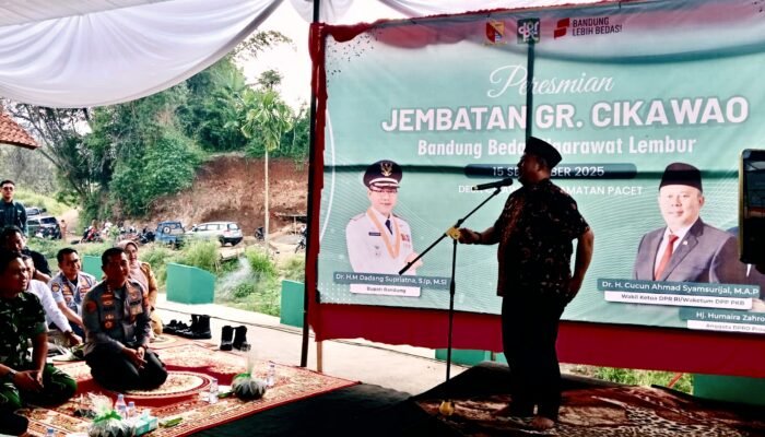 SNU//Kab Bandung – Wakil Ketua DPR RI Cucun Ahmad Samsurijal bersama Bupati Bandung Dadang Supriatna yang akrab dipanggil Kang DS ini, secara resmi meresmikan penggunaan Jembatan Cikawao di Desa Cikawao, Kecamatan Pacet, Kabupaten Bandung, Senin (15/9/2025).