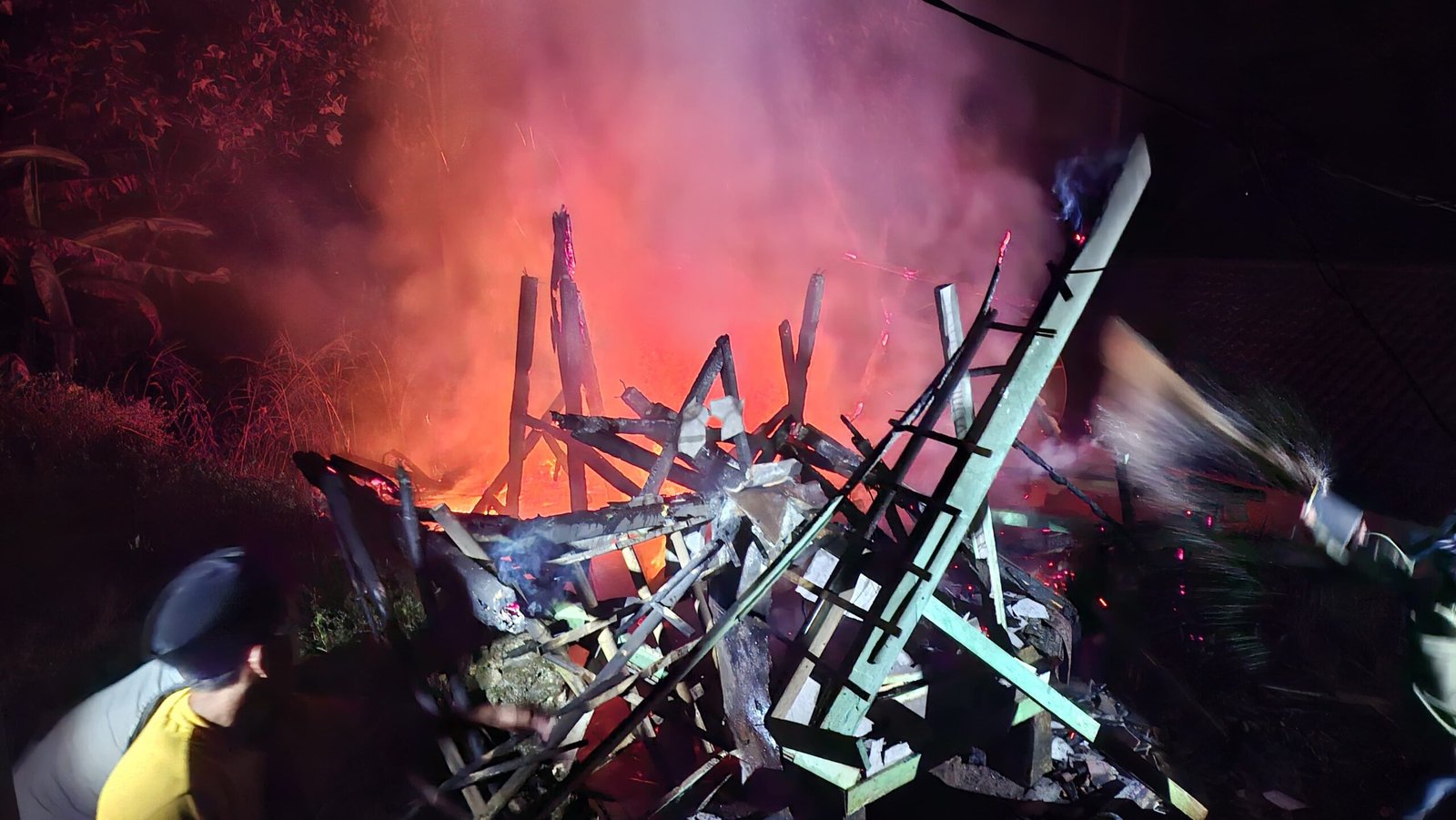 Warga sekitar yang melihat kobaran api sempat berupaya melakukan pemadaman menggunakan peralatan seadanya. Namun, karena rumah berbahan kayu, api cepat membesar dan melahap seluruh bangunan.