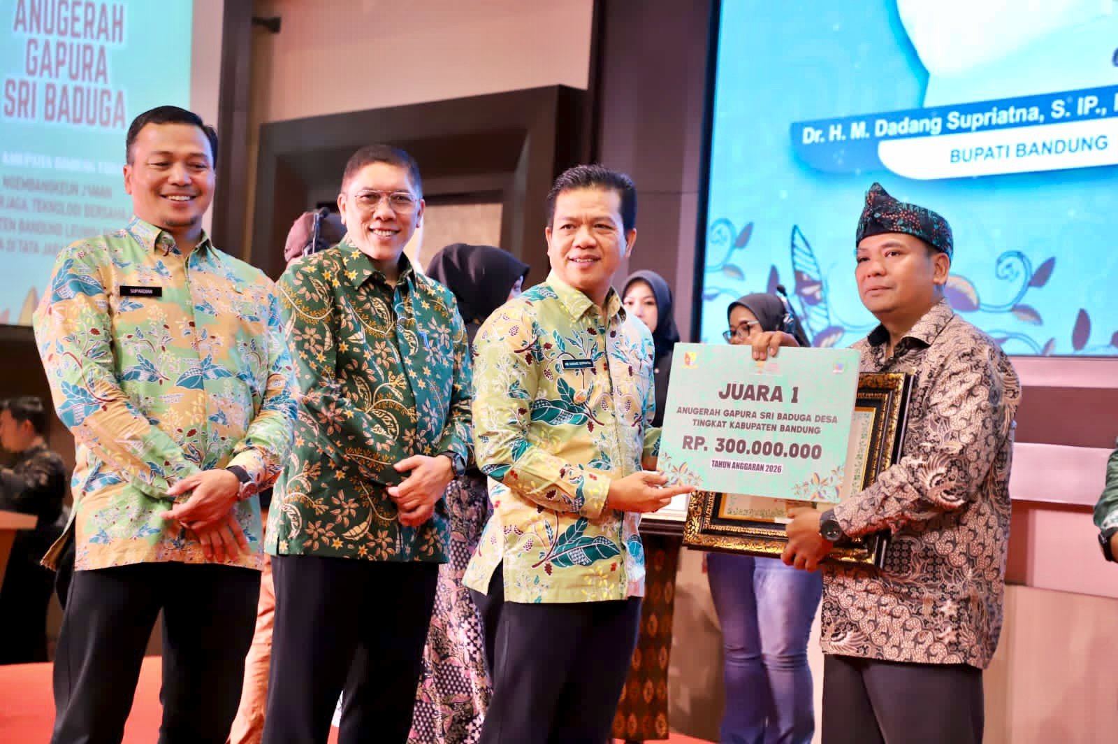 “Anugerah ini merupakan salah satu program Pak Gubernur yang dikolaborasikan dengan program Pemkab Bandung. Anugerah ini sebagai bentuk apresiasi atau penghargaan bagi desa dan kelurahan yang berkinerja baik,” jelas Kang DS, sapaan akrab Bupati Dadang Supriatna.