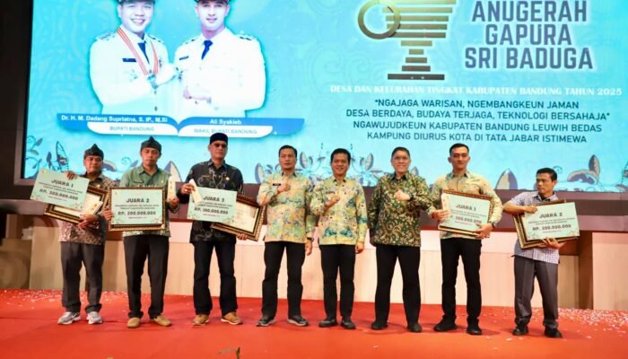 SNU//Kab.Bandung – Desa Cibiru Wetan dan Kelurahan Pasawahan berhasil meraih Anugerah Gapura Sri Baduga, sebagai terbaik pertama untuk kategori desa dan kelurahan terbaik di Kabupaten Bandung tahun 2025.