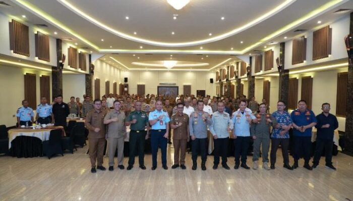 Seluruh peserta Rakor Lintas Sektor berfoto bersama di Sunshine Hotel Soreang, Senin (15/12/25)