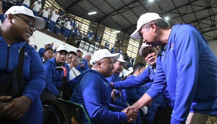 SNU|KOTA BANDUNG,- Penjabat Gubernur Jawa Barat Bey Machmudin melepas atlet Jabar yang akan bertanding di ajang Pekan Paralimpik Nasional (Peparnas) XVII/ 2024, di Gedung Saparua Bandung, Selasa (1/10/2024).