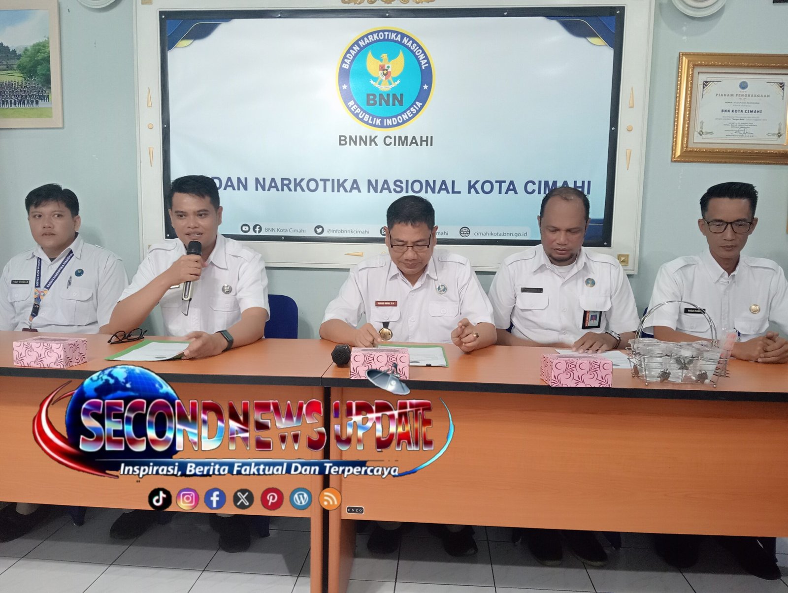 Kepala BNN Kota Cimahi, Yulius Amra, bersama jajaran, yakni Hana Gumiyarna, SKM (Plt. Kasubag Umum), Yoni Ronald, S.E (Katim P2M), Yusuf Muharam, AMK (Plt. Katim Rehabilitasi), serta Bagus Rampa, S.E., M.M (Katim Pemberantasan), menyampaikan bahwa paparan dilakukan sebagai bentuk transparansi kepada publik.