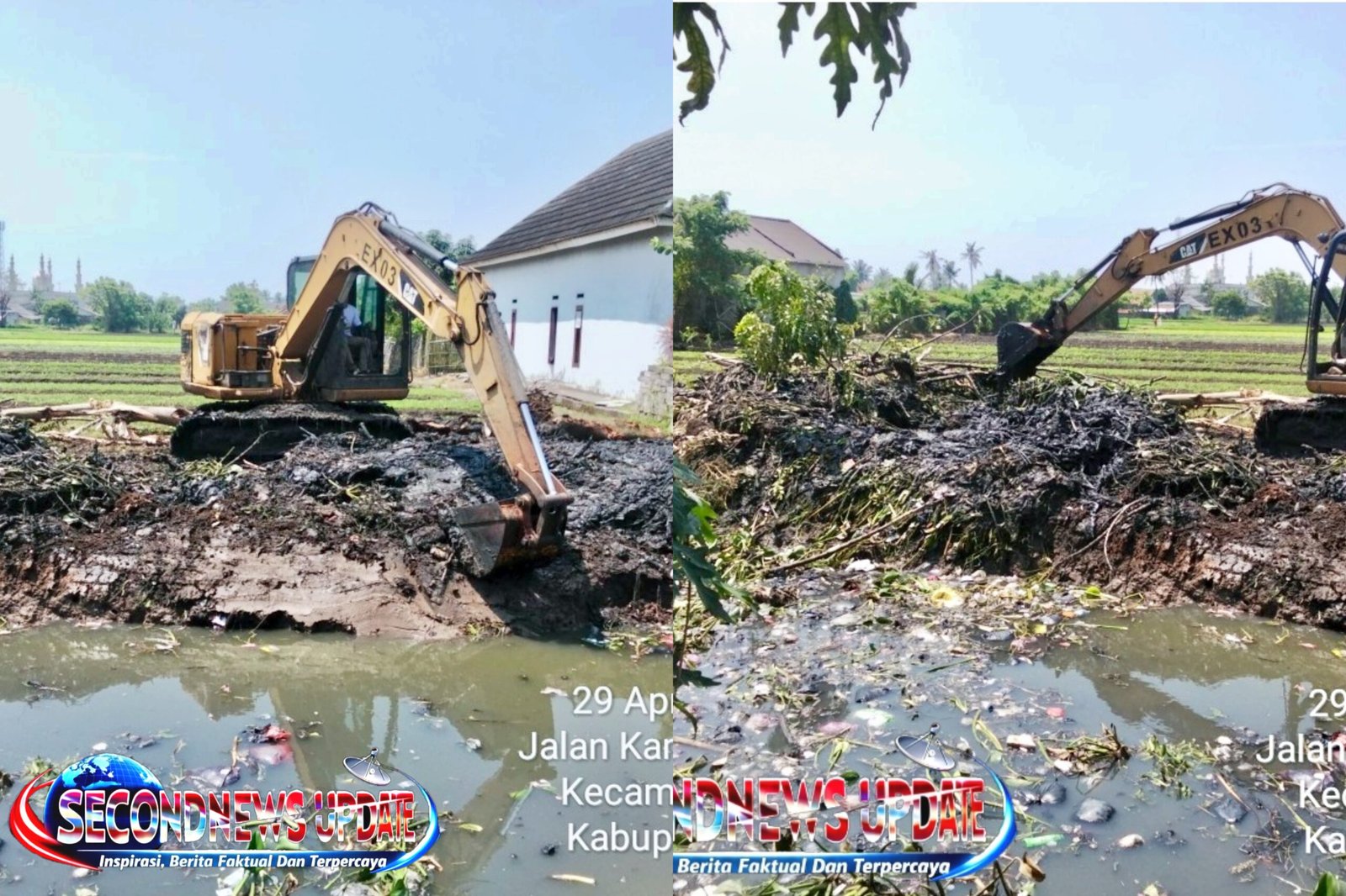 Kegiatan pengerukan sedimentasi ini telah dimulai sejak Minggu, 26 April 2026, dengan mengerahkan alat berat excavator PC 75 guna membersihkan endapan lumpur yang menghambat aliran air di saluran tersebut.