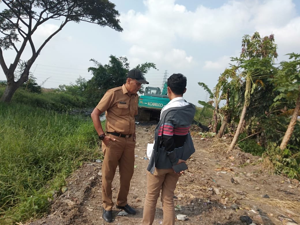 H.Suhanda Sebagai PPTK melihat langsung kondisi pekerjaan CV. SAP dilokasi kegiatan normalisasi saluran pembuang Cilampe, senin (28/04/2025) .