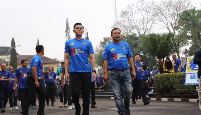Kapolres Kabupaten Garut, AKPB Mochamad Fajar Gumilang dan PJ Bupati Kabupaten Garut Barnas Adjidin saat mengikuti gerak jalan santai