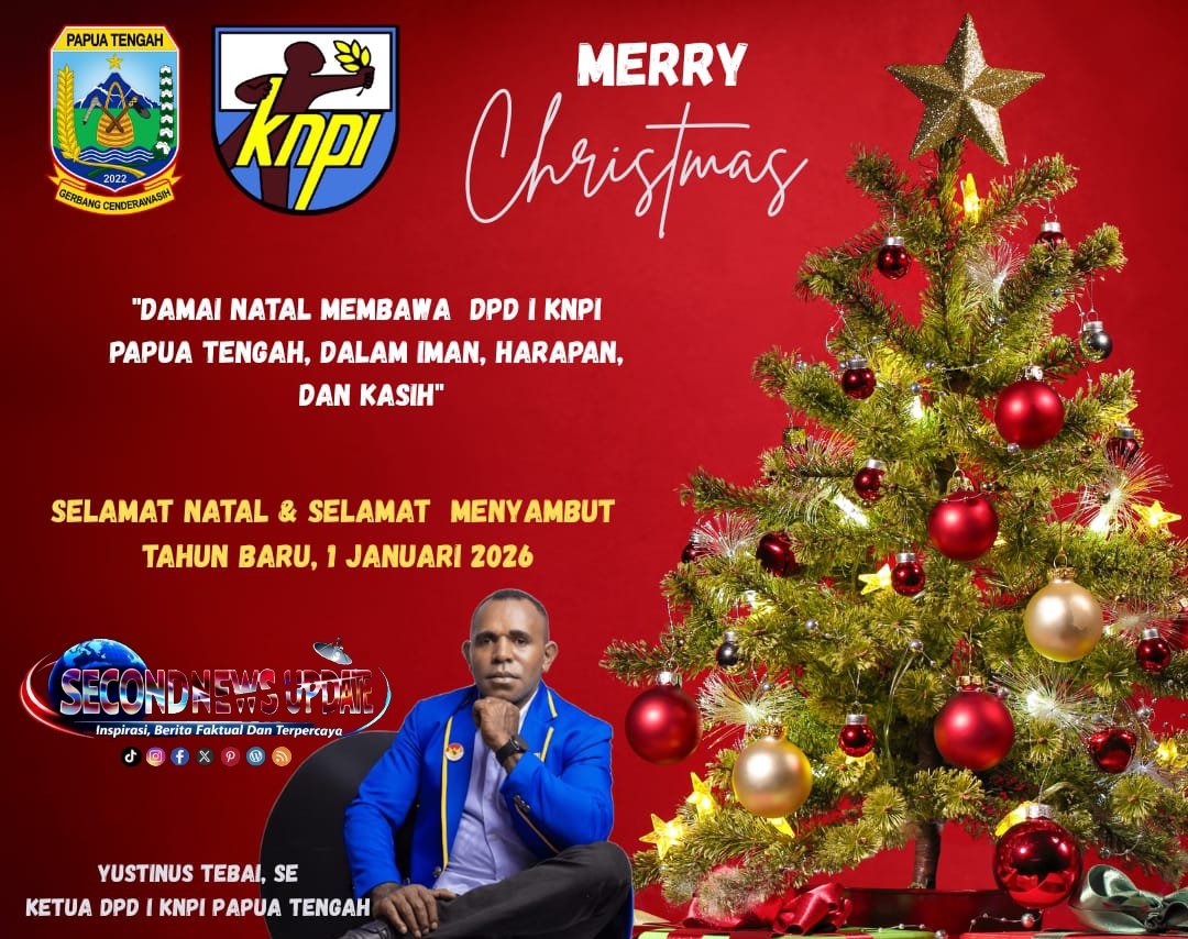 SNU//Nabire, Papua Tengah – Dewan Pengurus Daerah (DPD) I Komite Nasional Pemuda Indonesia (KNPI) Papua Tengah menyampaikan ucapan Selamat Natal 2025 dan Selamat Tahun Baru 2026 kepada seluruh umat Kristiani di Papua Tengah maupun di seluruh Indonesia.