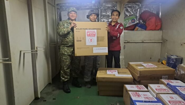 Sebanyak sepuluh set PLTS Portable yang berkapasitas 100 W dan 200 W diserahkan kepada Kementerian Pertahanan RI, yang diwakili oleh Letkol Erya Rahman Hakim di pangkalan Kolinlamil (Komando Lintas Laut Militer) Jakarta, untuk selanjutnya dikirimkan ke lokasi bencana di Sumatra menggunakan KRI Surabaya-591, Kamis(11/12/2025).