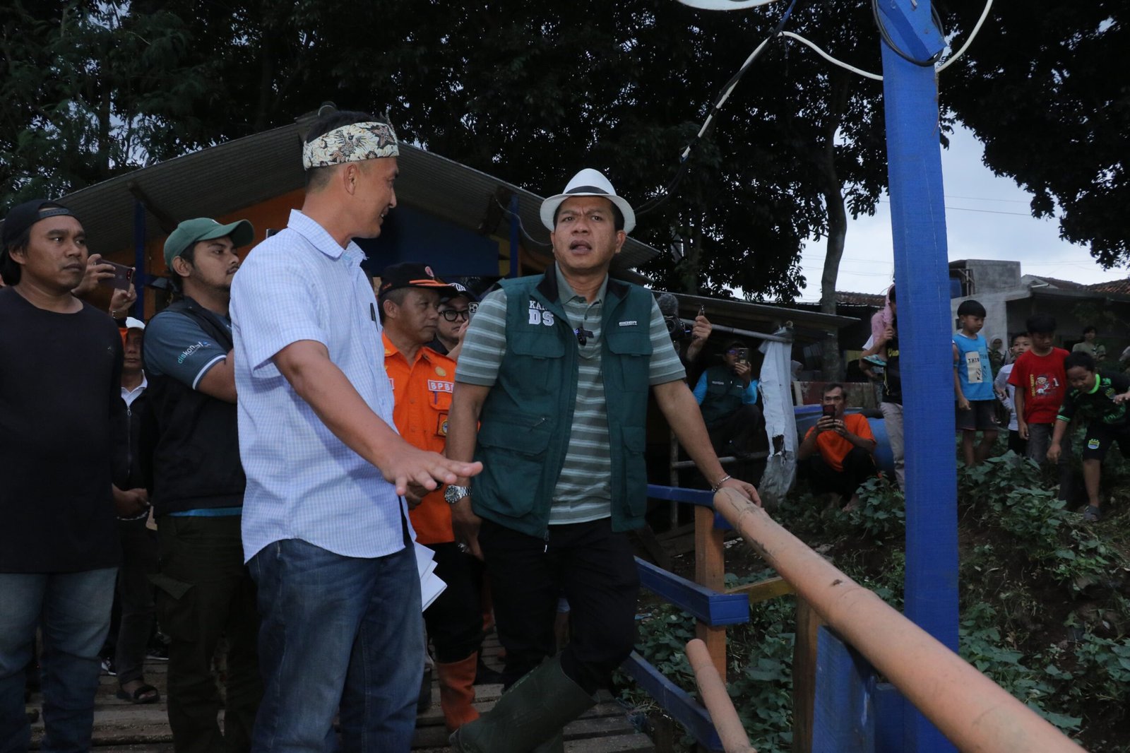 SNU|Kabupaten Bandung – Bupati Bandung Dadang Supriatna gercep tinjau jembatan apung penghubung Kampung Cijeruk Kecamatan Bojongsoang dan Kampung Mekarsari Kecamatan Baleendah, Sabtu (24/5/2025).
