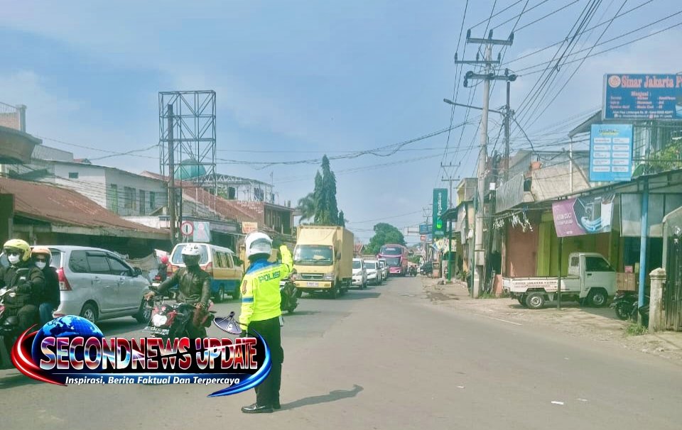 Kapolsek Limbangan bersama anggota turun langsung ke lapangan untuk memantau sekaligus mengatur arus lalu lintas agar tetap lancar dan aman.