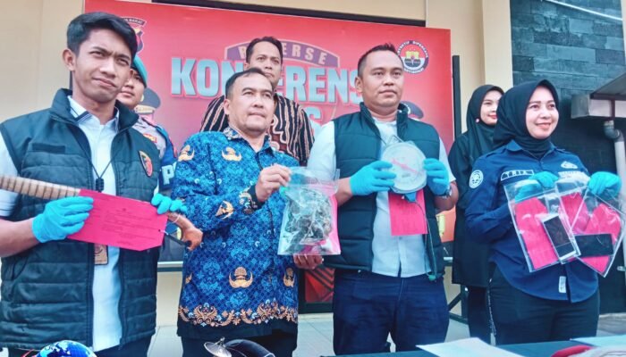 Plt. Kasat Reskrim Polres Tasikmalaya, Ipda Agus Yusup Suryana didampingi Kasi humas menunjukan barang bukti, Senin(20/4/2026). (Foto:Krist)