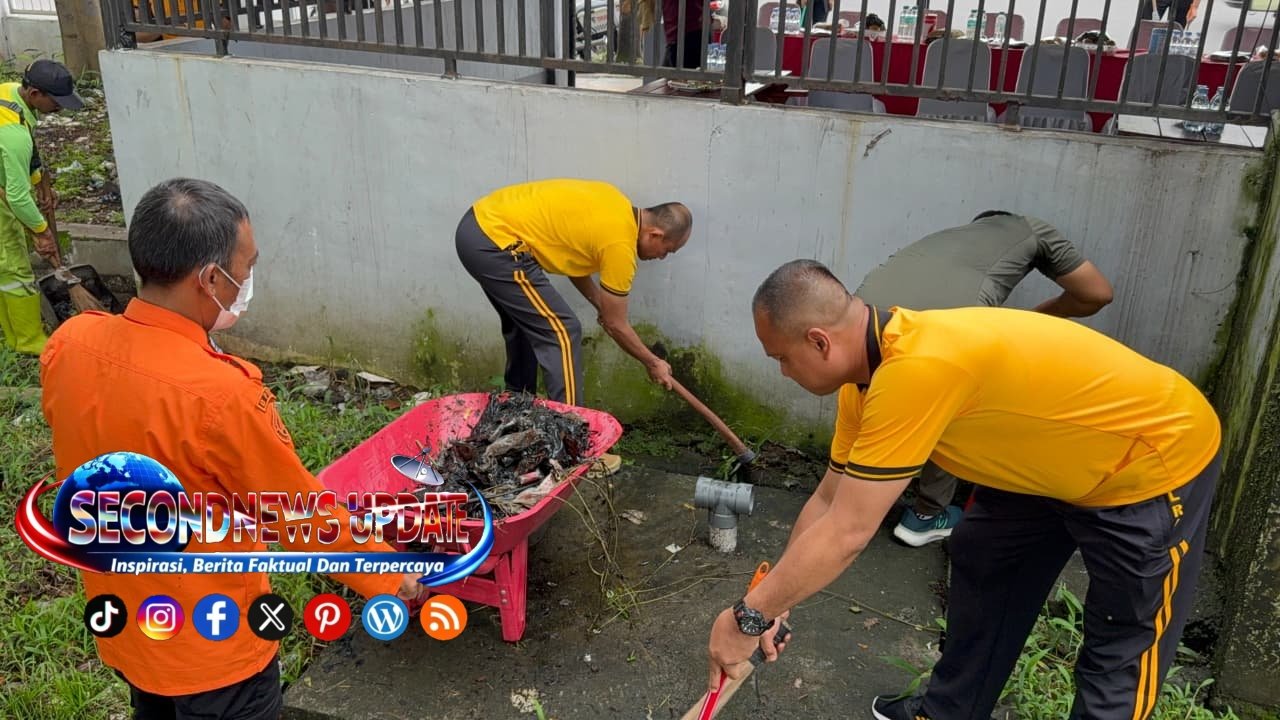 Dengan semangat kebersamaan, para peserta membersihkan area alun-alun, saluran air, serta lingkungan sekitar dari sampah dan material yang berpotensi mengganggu kebersihan maupun kesehatan masyarakat.