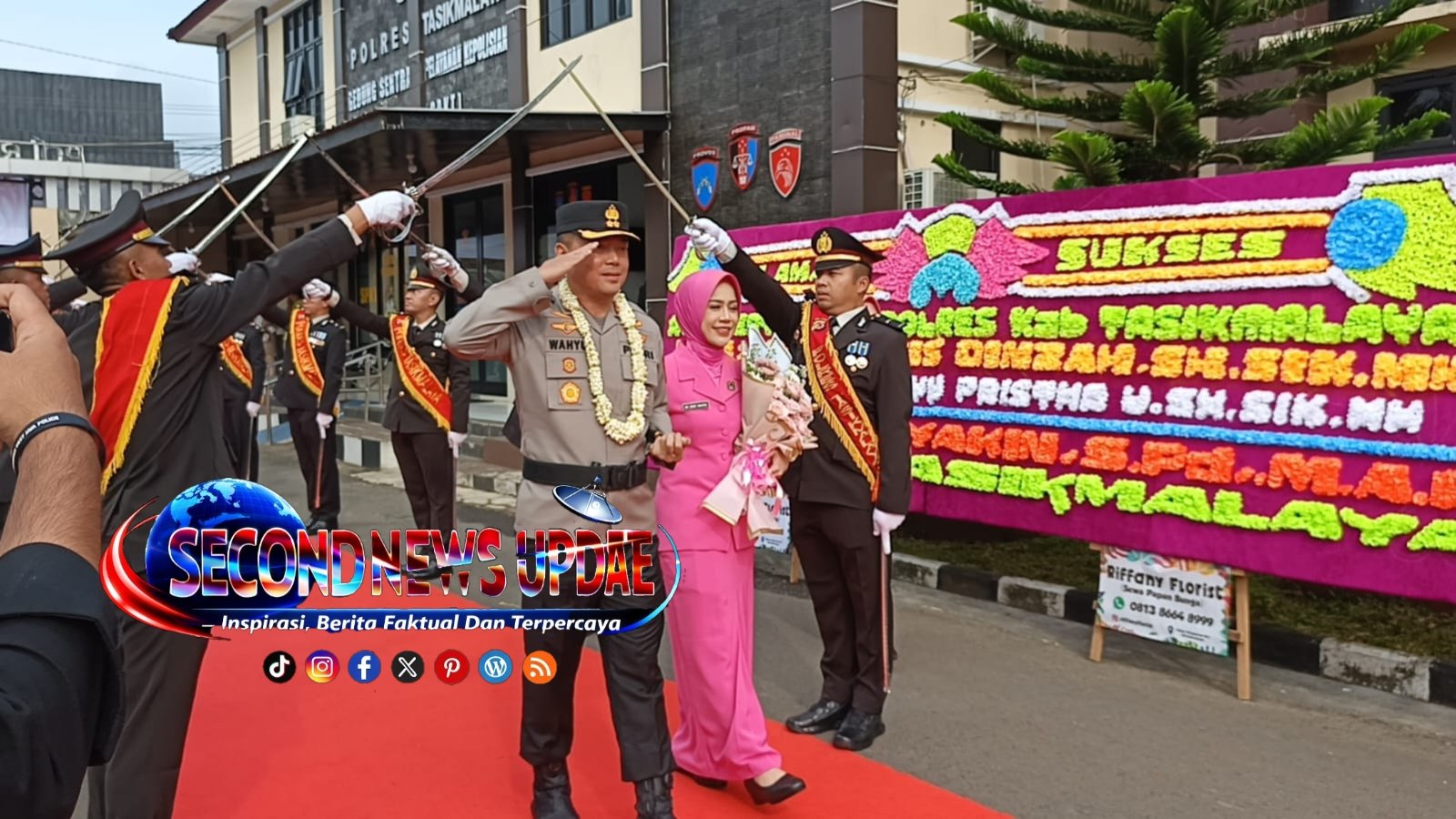 Prosesi penyambutan dipimpin langsung oleh Wakapolres Tasikmalaya Kompol Sukmawijaya, ditandai dengan tradisi pedang pora serta pengalungan bunga, sebagai simbol dimulainya babak baru kepemimpinan di lingkungan Polres Tasikmalaya, Kabupaten Tasikmalaya.