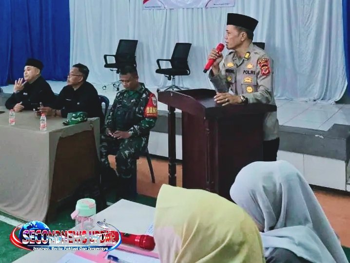 Kapolsek Cibatu AKP Amirudin Latif, S.H. memberikan sambutan sekaligus arahan kepada seluruh peserta musyawarah agar bersama-sama menjaga situasi keamanan dan ketertiban selama proses pemilihan berlangsung.