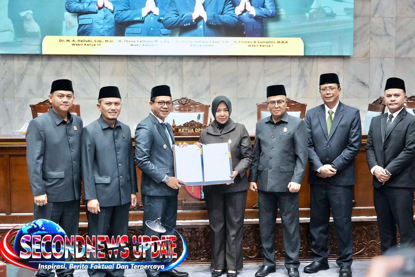 Bupati Bandung KDS (ketiga dari kiri) menerima berkas rekomendasi dari DPRD yang diserahkan Ketua DPRD Renie Rahayu Fauzi, Kamis (30/26);
