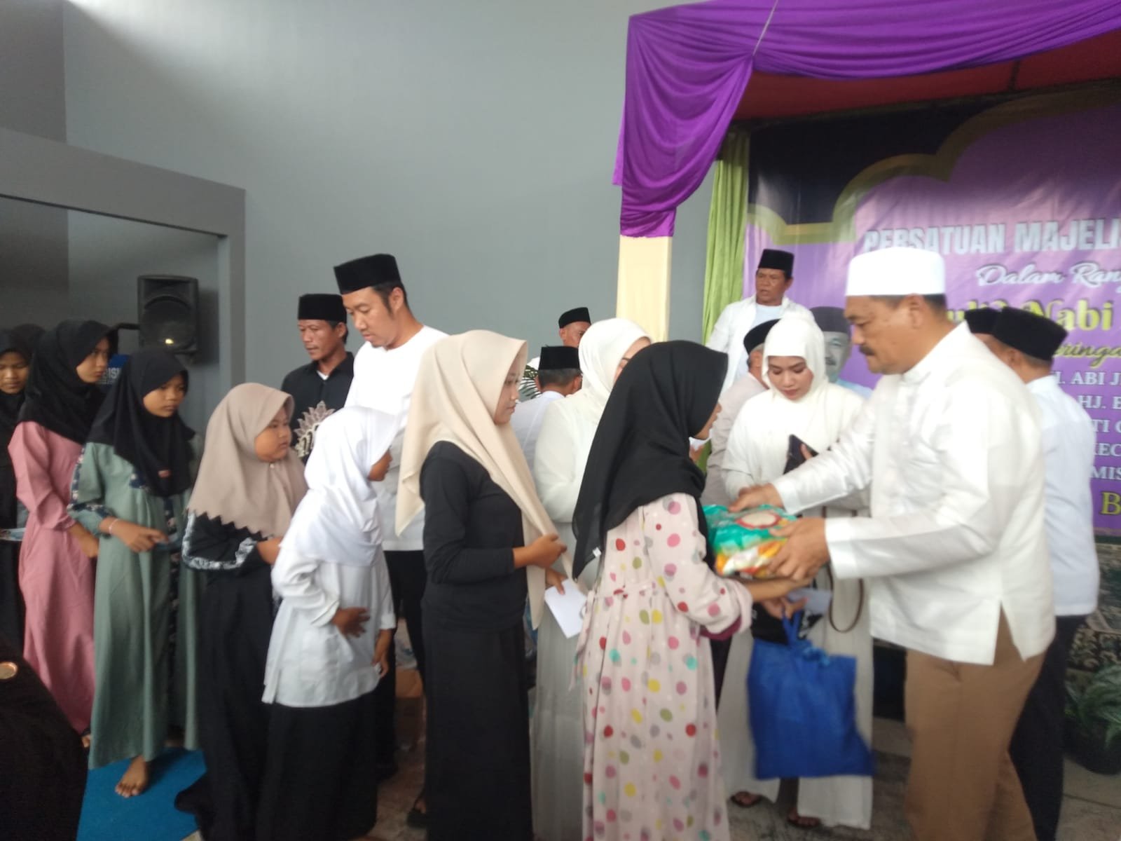 Acara peringatan Maulid Nabi tersebut dihadiri ratusan jamaah yang dengan antusias mengikuti rangkaian kegiatan, mulai dari tausiah agama, pemberian santunan kepada 150 anak yatim piatu, hingga pembagian beras 10 kilogram untuk para janda lanjut usia.