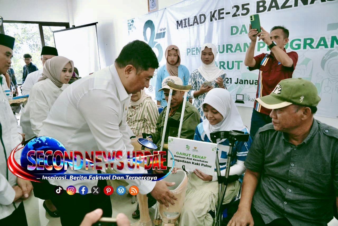 Garut//secondnewsupdate.co.id –Bupati Garut, Abdusy Syakur Amin, menghadiri puncak peringatan Milad ke-25 Badan Amil Zakat Nasional (BAZNAS) Kabupaten Garut pada Rabu (21/1/2026).