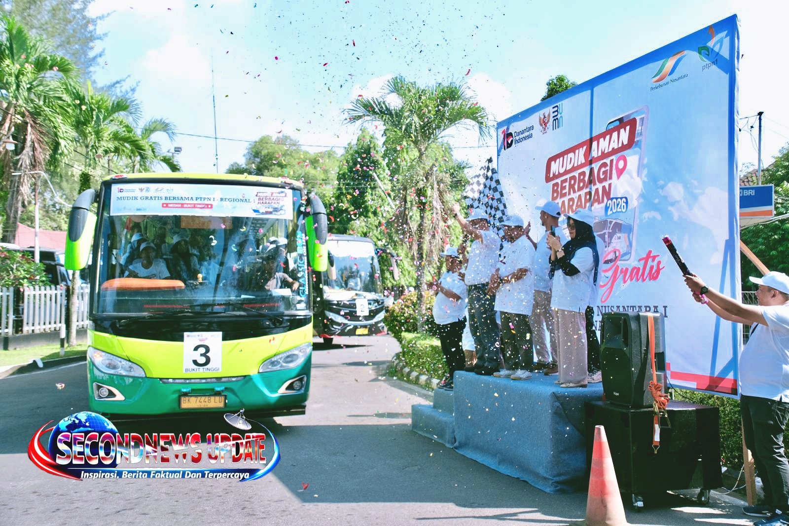 Medan//secondnewsupdate.co.id – Dalam semangat berbagi kebahagiaan menjelang Hari Raya Idulfitri, PT Perkebunan Nusantara I (PTPN I) Regional 1 secara resmi melepas keberangkatan tiga unit bus mudik gratis bagi masyarakat dan keluarga besar perusahaan, Selasa (17/3/2026).