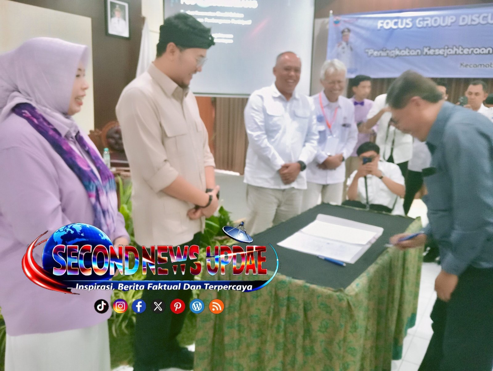 Dari kiri kekanan, Camat Cimahi Selatan, Rika Martiana, Wakil Walikota Cimahi Cimahi Adithia Yudistira, Ketua DPRD Kota Cimahi Wahyu Widyatmoko dan Ketua LPM Kecamatan Cimahi Selatan, Asep Hendrawan, menyaksikan penandatanganan persetujuan FGD dan Musrenbang 2027 dari tokoh masyarakat Kecamatan Cimahi Selatan, Tata Wikanta