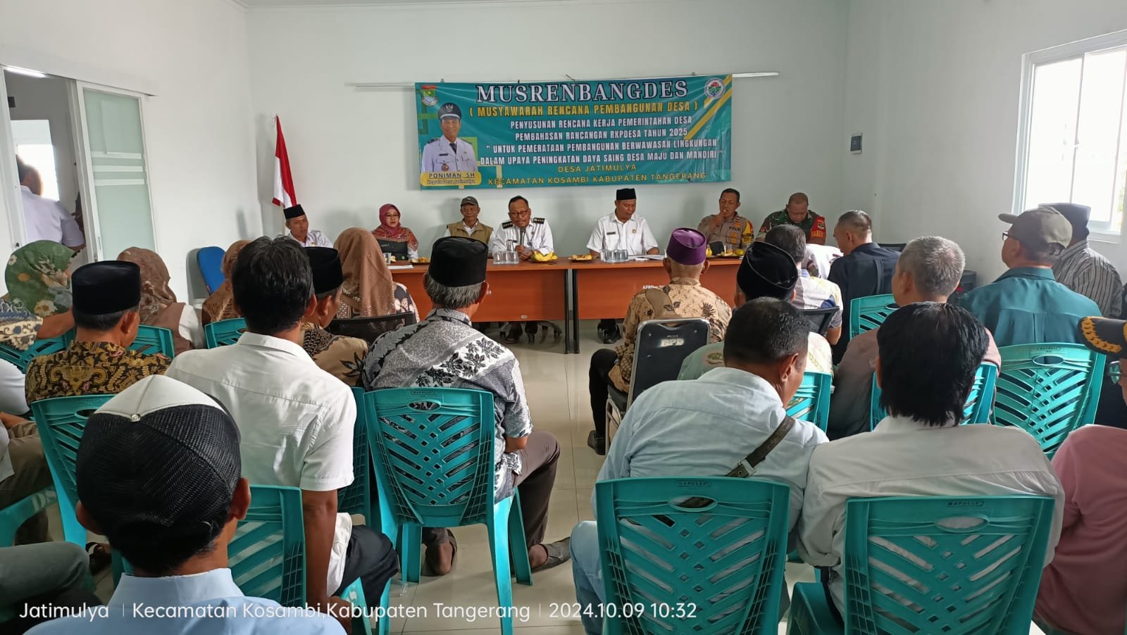 Musrenbangdes RKPdes Tahun 2025 desa Jatimulya kecamatan Kosambi hari rabu (09 Oktober 2024), camat Kosambi H. aswami S,IP, MM, kepala desa Jatimulya Poniman SH.