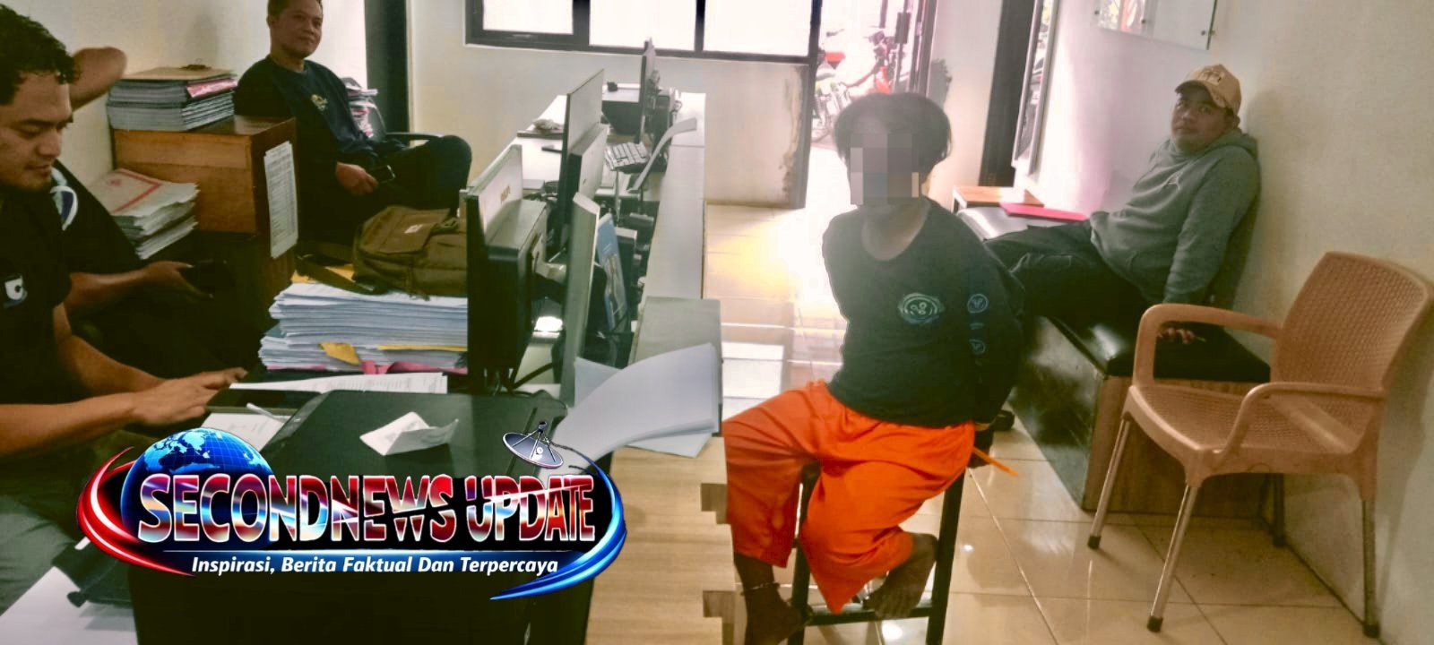 Seorang pria berinisial AS (40), warga Kecamatan Banjarwangi, Kabupaten Garut, berhasil diamankan warga akibat pelaku telah mencuri HP milik M. Restu Anugrah (21), seorang pelajar/mahasiswa asal Kota Depok, kehilangan satu unit handphone Android Xiaomi 13T setelah diduga mencuri satu unit handphone milik seorang mahasiswa, sedang di interogasi pihak aparat kepolisian Polsek Banjarwangi. (Foto : Agung)