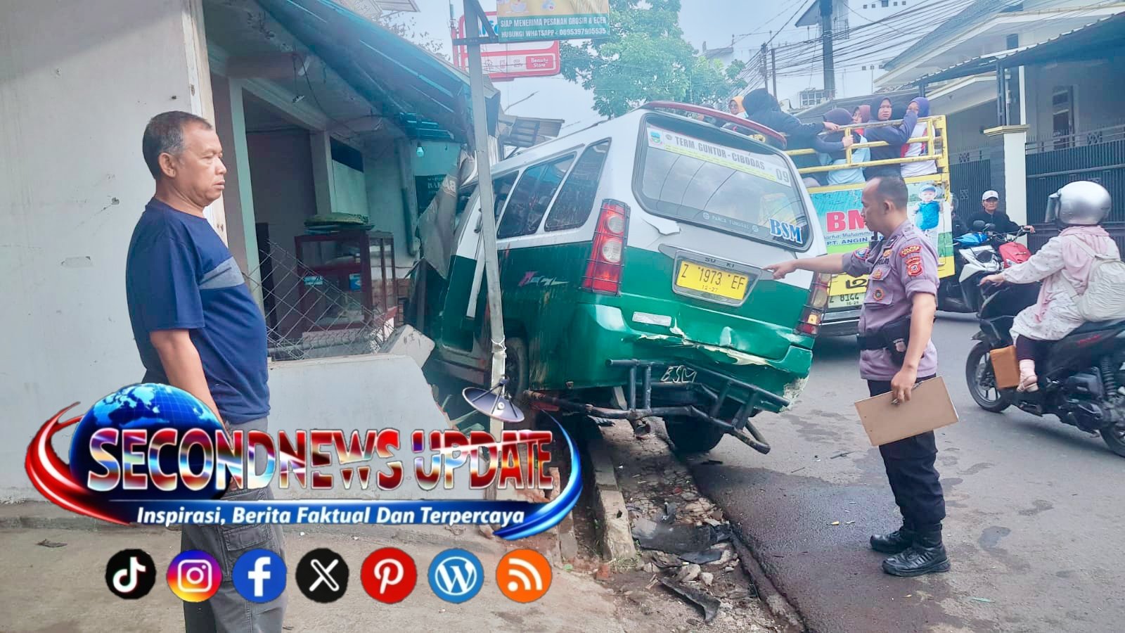 Akibat benturan keras tersebut, angkot yang dikemudikan Engkos Koswandi (58) terdorong hingga menabrak pagar rumah milik warga bernama Firman Sidik, menyebabkan kerusakan material yang cukup parah.