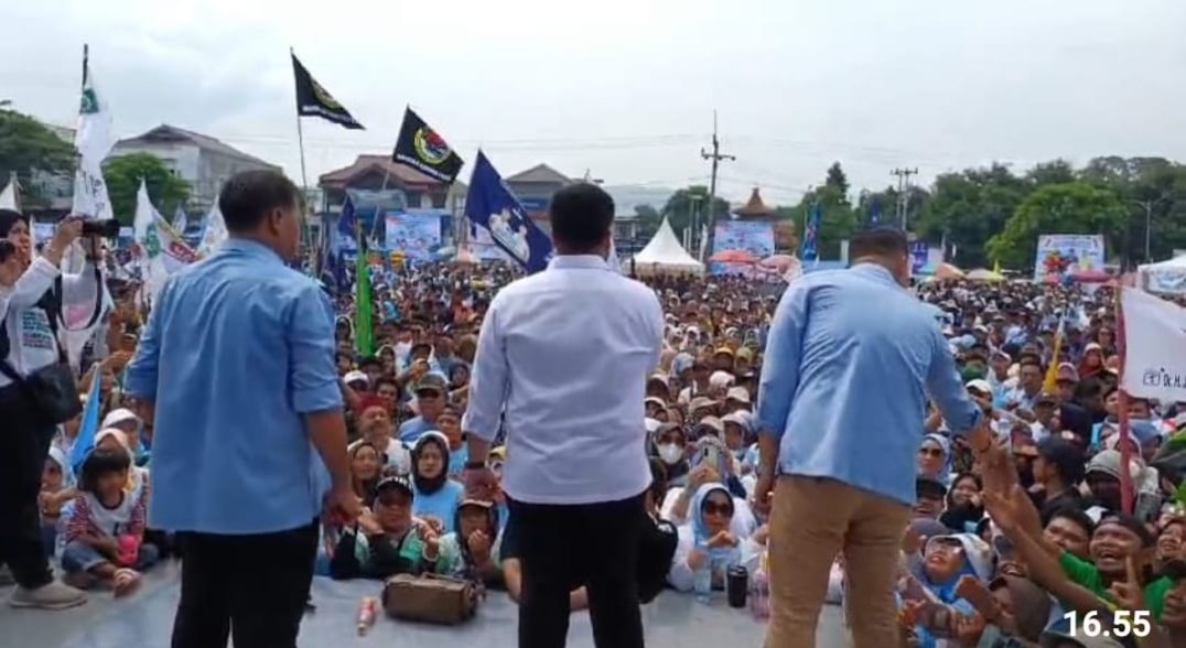 SNU|Majalengka – Memasuki hari terakhir Kampanye akbar calon Bupati dan Wakil Bupati Majalengka nomor urut 1 Eman Suherman-Dena Muhamad Ramdhan pecah. Puluhan ribu massa tampak menyesaki lahan bekas pasar lama yang berada di Jalan KH Abdul Halim, Kelurahan Majalengka Wetan, Kecamatan/Kabupaten Majalengka.