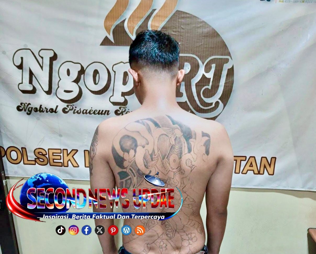 Saat diamankan, petugas juga mendokumentasikan ciri-ciri khusus pelaku, termasuk tato berukuran besar yang menutupi hampir seluruh bagian punggung, sebagai bagian dari identifikasi dan kelengkapan berkas penyidikan.