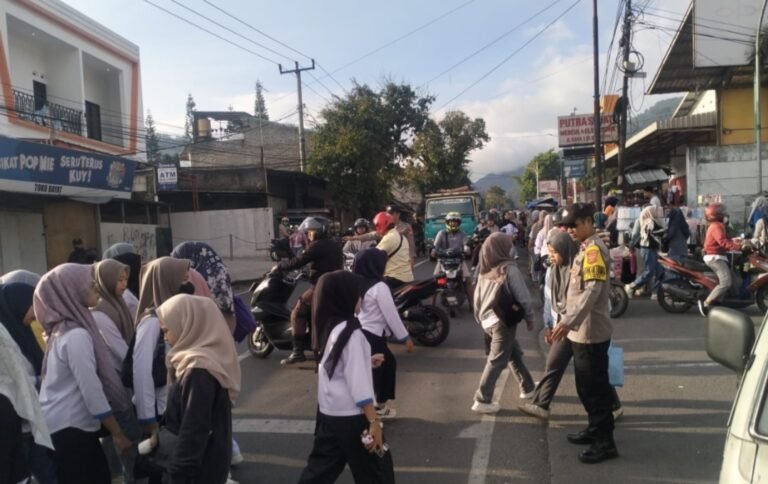 SNU//Garut – Kepolisian Resor (Polres) Garut melaksanakan kegiatan pengaturan lalu lintas (gatur lalin) pagi secara serentak di sejumlah titik rawan kemacetan, Kamis pagi (27/11/2025).
