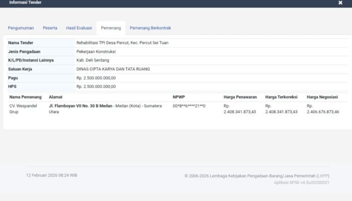 Deli Serdang// secondnewsupdate.co.id – Proyek rehabilitasi Tempat Pendaratan Ikan (TPI) Desa Percut, Kecamatan Percut Sei Tuan, Kabupaten Deli Serdang, senilai Rp2,5 miliar, menuai sorotan tajam.