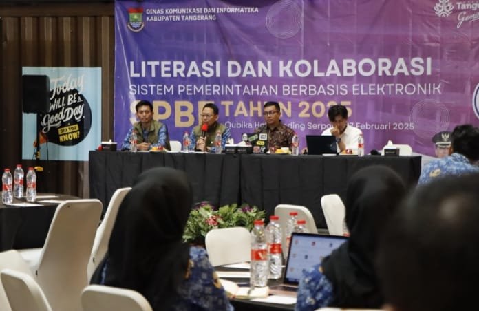 SNU|Kabupaten Tangerang (Banten) – Dinas Komunikasi dan Informatika (Diskominfo) Kabupaten Tangerang menggelar Rapat Literasi dan Kolaborasi Sistem Pemerintahan Berbasis Elektronik (SPBE) Tahun 2025 sebagai langkah strategis untuk meningkatkan pemahaman dan sinergi antar pemangku kepentingan dalam penerapan SPBE.