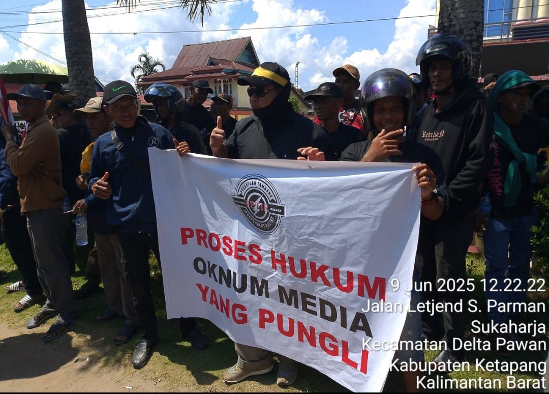 SNU//Ketapang Kalimantan Barat Ratusan Penambang Emas Tanpa Izin (PETI) dari Kecamatan Mantan Hilir Selatan (MHS), Kabupaten Ketapang, Kalimantan Barat, melakukan aksi unjuk rasa di Mapolres Ketapang, sekitar pukul 11.35 WIB. Senin (9/6/2025).