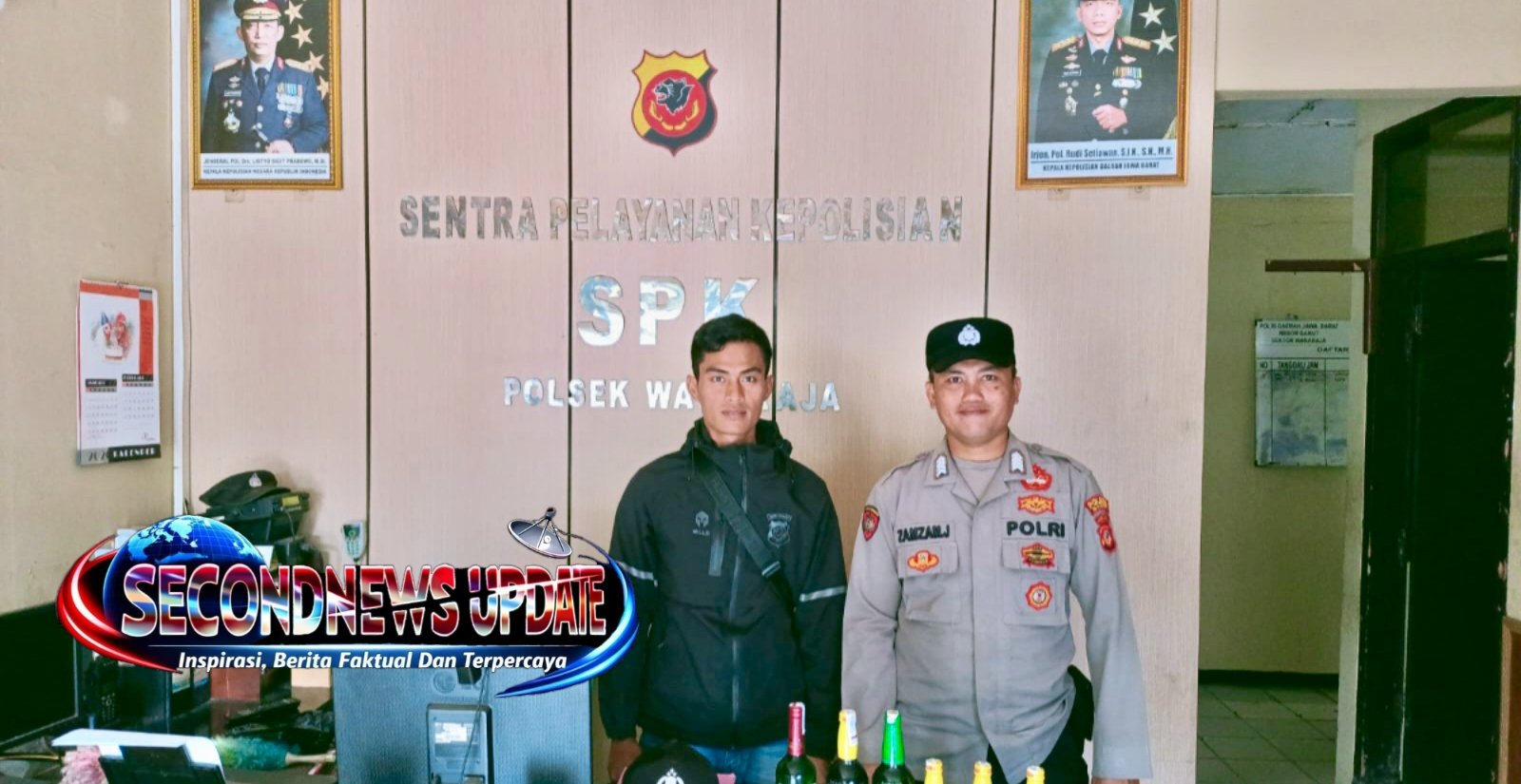 Dalam operasi tersebut, petugas berhasil mengamankan sejumlah botol miras dari seorang pedagang di wilayah Kecamatan Wanaraja, Kabupaten Garut.