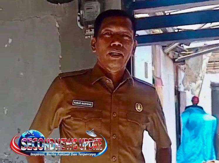 Subur Maryono kepala desa Kp.Melayu barat, kecamatan Teluknaga, kabupaten Tangerang dilokasi rumah roboh Rogaya di kp. Kali jaya RT.01 RW.10
