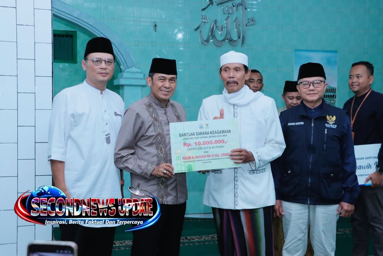 Walikota Cimahi Ngatiyana dalam safari Ramadhan 2026 tersebut, secara simbolis menyerahkan bantuan keagamaan dari BAZNAS Kota Cimahi sebesar Rp 10 juta .