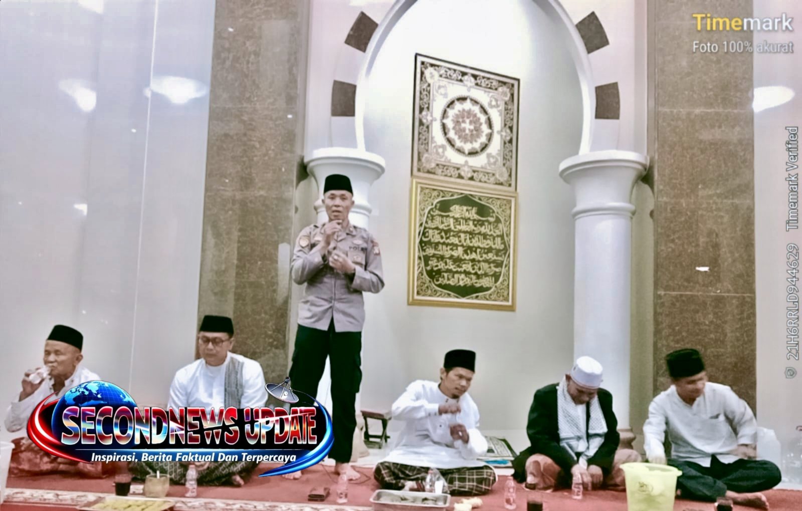 Kompol Alit Kadarusman menyampaikan pesan-pesan kamtibmas kepada jamaah yang hadir. Ia mengajak seluruh warga untuk bersama-sama menjaga keamanan dan ketertiban lingkungan selama bulan Ramadan.