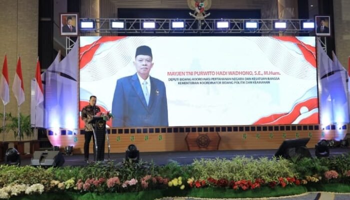 Deputi Bidang Koordinasi Pertahanan Negara dan Kesatuan Bangsa Mayjen TNI Purwito Hadi Wardhono dalam sambutannya menegaskan pentingnya kolaborasi lintas sektor untuk memperkuat ideologi Pancasila di tengah berbagai tantangan kebangsaan.