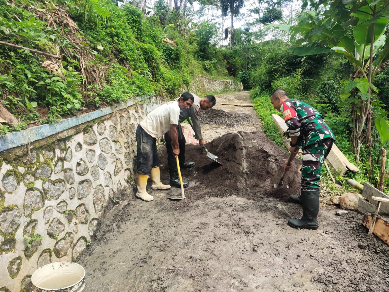 Dengan semangat gotong-royong, TNI, Polri, dan masyarakat bekerja sama untuk melakukan pengecoran jalan, meratakan permukaan, dan memastikan jalan tersebut dapat berfungsi dengan baik untuk mendukung mobilitas warga sehari-hari.