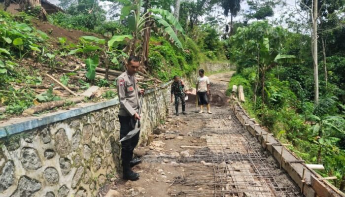 Sinergitas TNI-Polri Tingkatkan Kesejahteraan Masyarakat Lewat Pengecoran Jalan di Banjarwangi