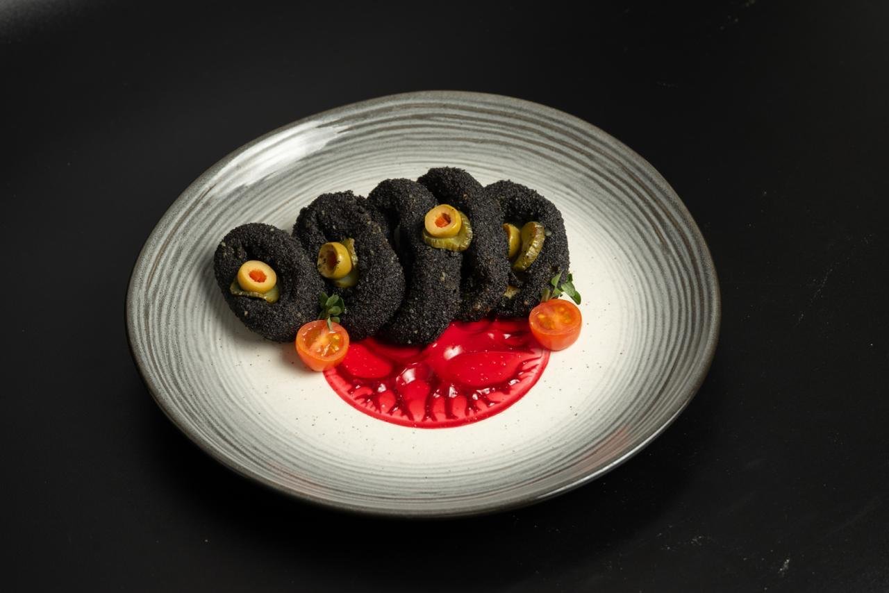 Beberapa hidangan bertema Halloween yang ditawarkan antara lain Monster’s Tentacle (Calamari Fritters), Devil’s Wings (Chicken Wings Fritters dengan saus BBQ merah gelap), Dracula’s Bloody Pasta (Pappardelle Beef Ragu dengan saus merah kental), Cannibal’s Feast Pizza (Meat Lovers Pizza), serta Graveyard Bones Fried Rice (Nasi Goreng Buntut). Pilihan pencuci mulut dan minuman juga dihadirkan dengan konsep serupa, seperti Bandung Spirit’s Treat (Tape Bakar) dan Witch’s Brew (Bajigur Latte).