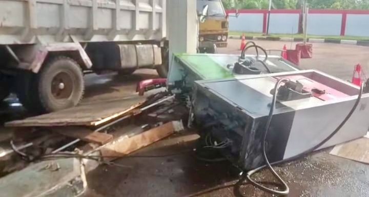 Truk Tabrak Mesin SPBU, Diduga Berebut Solar Subsidi di Teluk Bakung