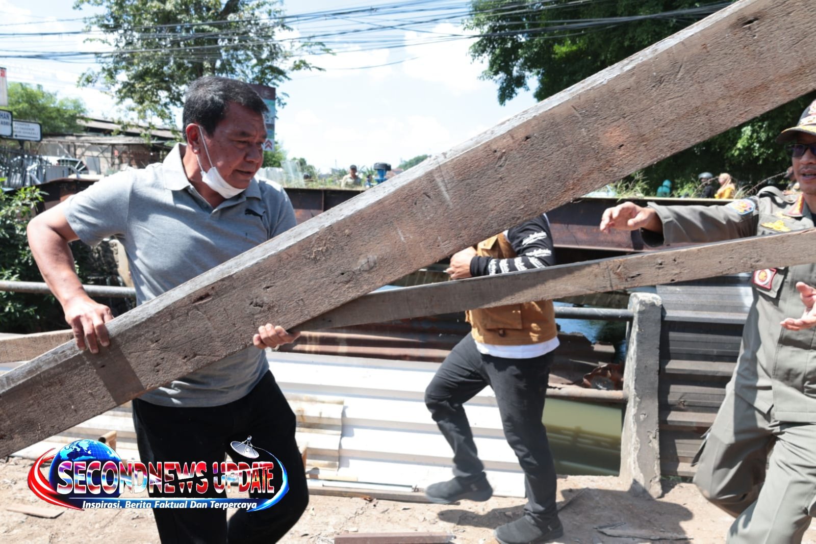 Tak hanya memberi instruksi, ia turun langsung ke lapangan memimpin penertiban bangunan liar di bantaran Sungai Cirarab.