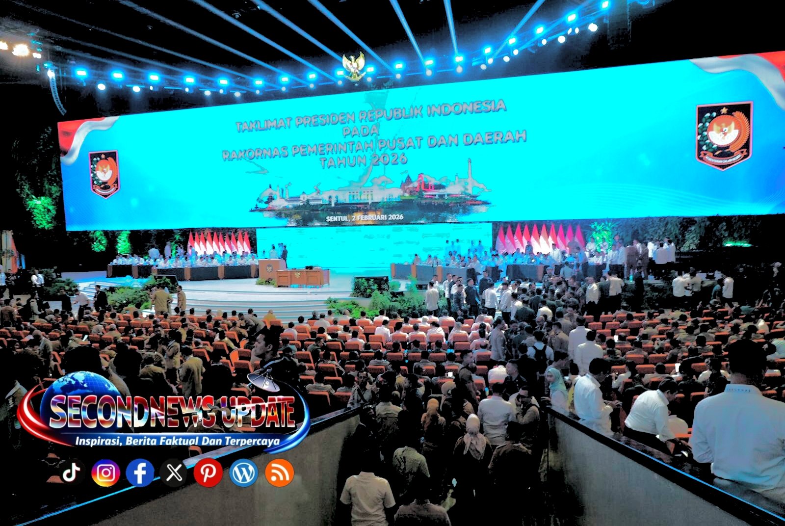 Wali Kota Cimahi Ngatiyana bersama Wakil Wali Kota Cimahi Adhitia Yudisthira dan jajaran Forum Koordinasi Pimpinan Daerah (Forkopimda) Kota Cimahi menghadiri Rapat Koordinasi Nasional (Rakornas) Pemerintah Pusat dan Pemerintah Daerah Tahun 2026 yang digelar di Sentul International Convention Center (SICC), Kabupaten Bogor, Jawa Barat, Senin (2/2/2026).