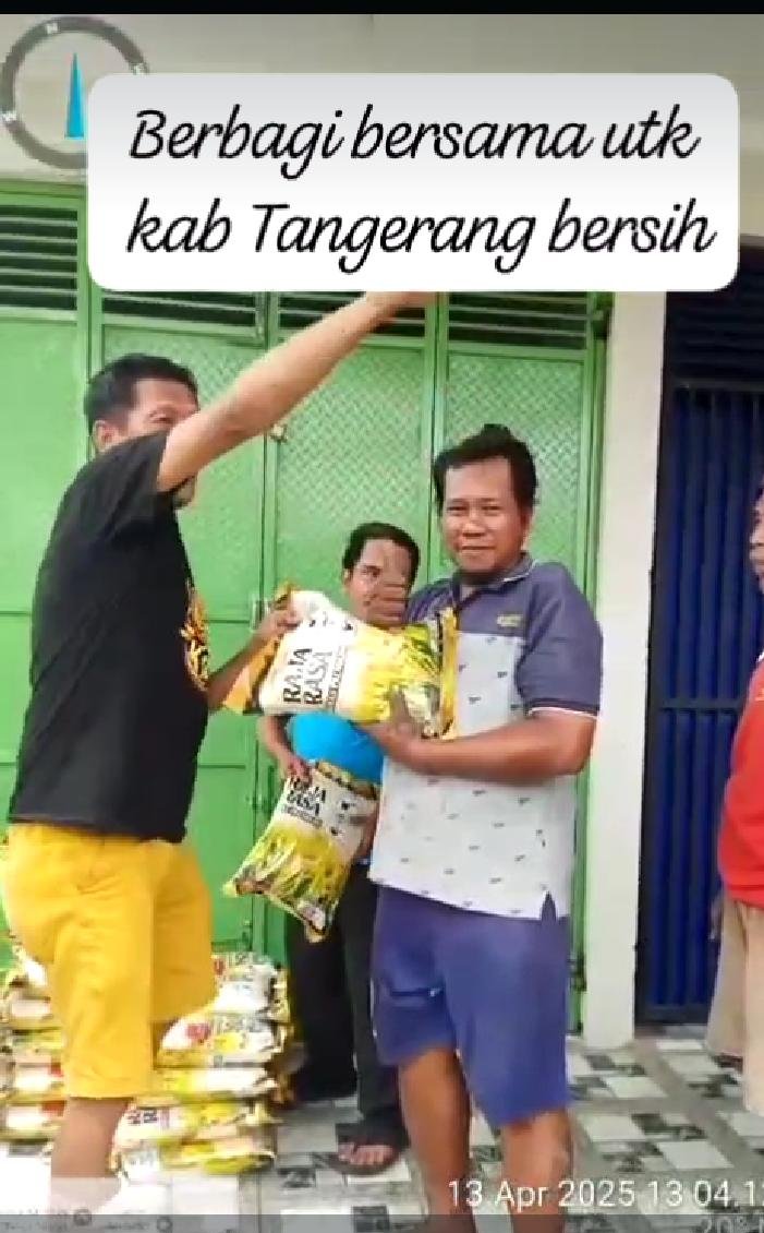 Kegiatan Baksos kebersihan swadaya masyarakat desa Kp.melayu barat ditutup kepala desa Subur Maryono dengan memberikan bantuan beras kepada masyarakat yang sudah ikut bergotong royong membersihkan sampah dan saluran dijalan teladan belakang mapolsek Teluknaga. (Dia)