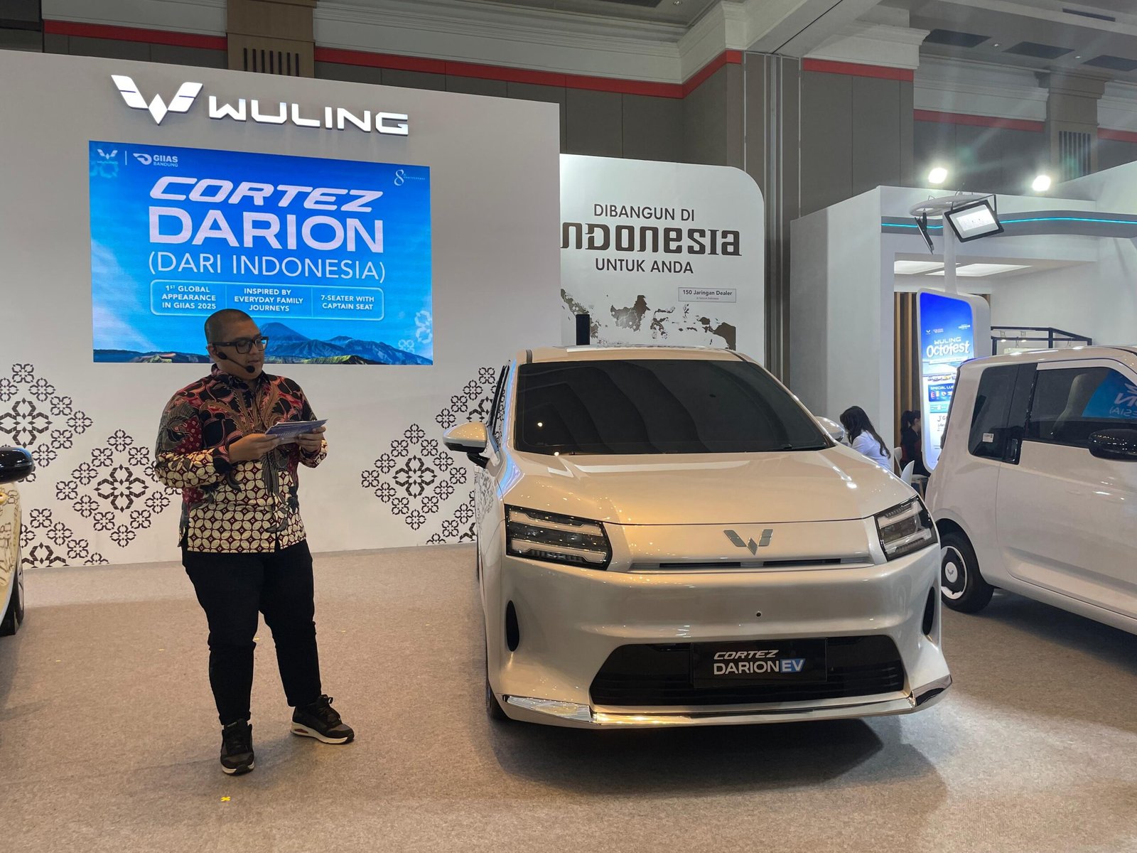 Tak ketinggalan, Wuling membawa Darion yang merupakan MPV terbaru yang lahir dari inspirasi perjalanan keluarga Indonesia. Nama “Darion” diambil dari frasa “Dari Indonesia”, mencerminkan bahwa model ini dikembangkan sesuai kebutuhan konsumen dalam negeri. Dengan konfigurasi 7-seater, captain seat, desain Elegant Streamline, serta fitur premium seperti Autocomfort Sliding Door dan electric sunroof, Darion menghadirkan pengalaman berkendara yang nyaman dan berkelas. Model ini tersedia dalam varian EV maupun PHEV sehingga konsumen dapat memilih teknologi ramah lingkungan yang sesuai dengan kebutuhan. Darion Varian EV dibekali motor listrik bertenaga 150 kW dengan jarak tempuh hingga 540 km (CLTC), serta didukung pengisian cepat CCS2 yang memungkinkan pengisian daya dari 30% ke 80% hanya dalam 30 menit. Sementara itu, varian PHEV memadukan mesin 1.5L Dedicated Hybrid Engine dengan motor listrik 145 kW dan Dedicated Hybrid Transmission (DHT). Dalam mode EV, mobil ini dapat menempuh hingga 125 km, dengan jarak tempuh gabungan lebih dari 1.000 km.